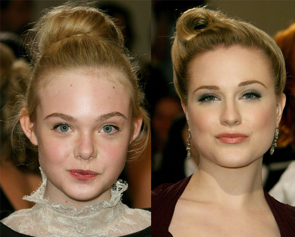 Coque – Eliminar todo o comprimento e franja do rosto em um coque alto deixa o visual bem elegante. Elle Fanning bem novinha prendeu o cabelo em um coque rosquinha para não tirar a atenção para o vestido. Evan Rachel Wood optou por um modelo mais elaborado de coque, para ostentar o look glamuroso.