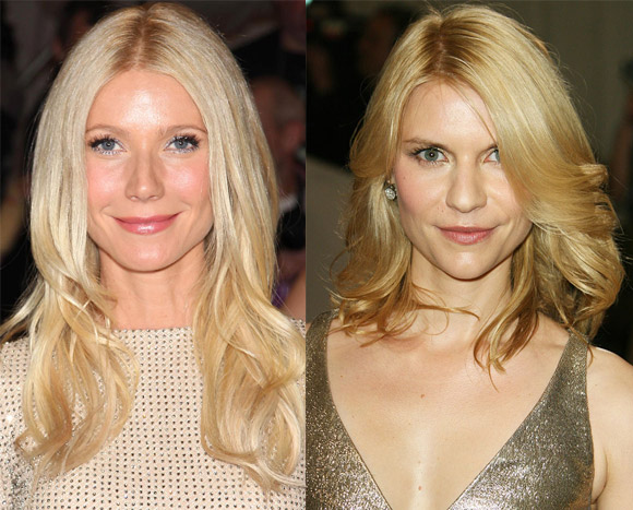 Liso com movimento – Pessoas com o cabelo muito liso podem dar um movimento da metade do comprimento até as pontas pra não deixar com cara de todo dia. Gwyneth Paltrou tem a risca do cabelo dividido ao meio como sua marca registrada, e pequenas ondas nas pontas valorizam o visual com o vestido. Clare Daines deixa o look mais sexy com a a franja lateral caída nos olhos.