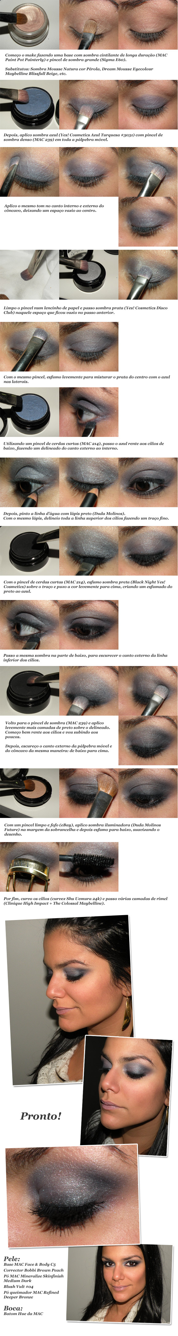O passo a passo de hoje é inspirado num look riquíssimo da coleção nova da Dior, mas com a vantagem de ser feito apenas com sombras baratinhas e fáceis de encontrar. Todas elas são vendidas na farmácia ou pela internet ou com revendedora. O make é bem escurinho, super bom pras festinhas desse final de semana!